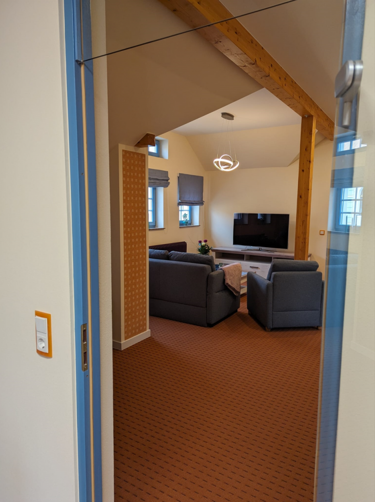 Sie wohnen in der Ferienwohnung “Zur Kirschallee” behaglich auf großem Raum. Alle Zimmer haben Zugang zu dem großzügigen, zentral gelegenen Wohnraum. Eine gemütliche Couchlandschaft sorgt für entspannten Aufenthalt bei schlechtem Wetter. Brettspiele für einen geselligen Abend sind vorhanden.