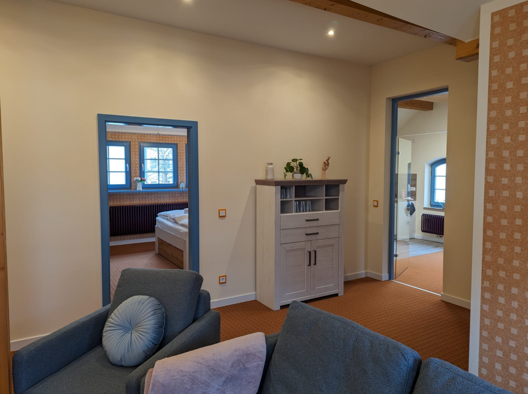 Die Ferienwohnung “Zur Kirschallee” lädt auf geräumigen 94 m² zum entspannten Verweilen für die gesamte Familie ein. Aber auch Paare, die das Besondere lieben, finden hier eine gemütliche Unterkunft.